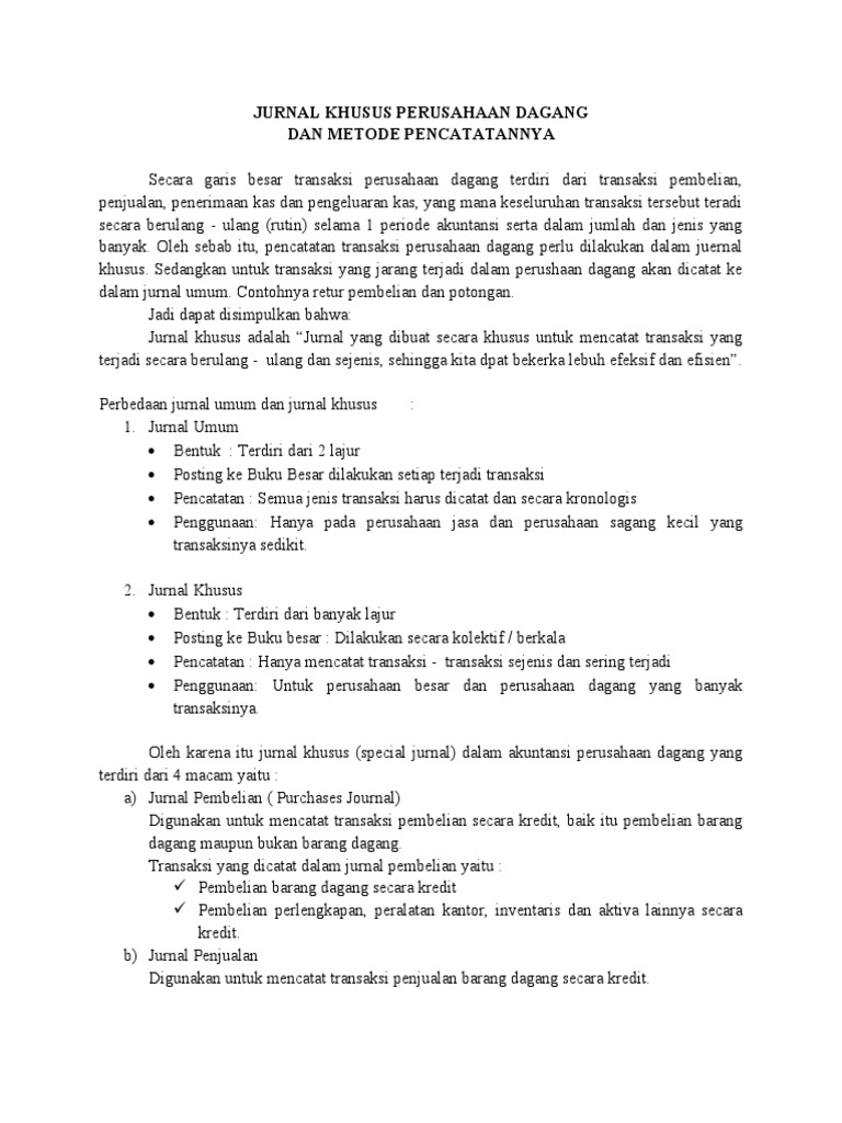 Jurnal pembelian secara kredit. Temukan jawabannya di artikel Blog Jurnal by Mekari! Piutang adalah salah satu jenis aktiva dalam sebuah perusahaan. Piutang timbul karena adanya penjualan barang atau jasa yang dilakukan berdasarkan kredit. Dengan kata lain, piutang merupakan utang dari pihak lain berupa uang akibat dari pembelian jasa/produk yang mereka lakukan secara kredit. Jurnal pembelian (semua pembelian secara kredit) Jurnal umum . Dipergunakan untuk mencatat transaksi-transaksi yang tidak masuk dalam jurnal khusus, misalnya pencatatan depresiasi aset tetap . Oct 02, 2021 · 18 Maret dibeli secara kredit dari toko Bromo perlengkapan toko seharga Rp. 250.000,00. 25 Maret Dibeli peralatan untuk kantor dengan harga Rp. 750.000,00. Jika jurnal pembelian berfungsi untuk mencatat pembelian barang dagang secara kredit saja, maka transaksi-transaksi diatas dicatat sebagai berikut : Misalnya, pada transaksi pembelian peralatan perusahaan secara utang akun yang terpengaruh oleh transaksi tersebut adalah mesin sebagai fixed assets dan akun lawannya adalah utang usaha sebagai bentuk pembelian secara kredit. Istilah debit note dan kredit note seringkali digunakan di dalam penulisan akuntansi perusahaan.