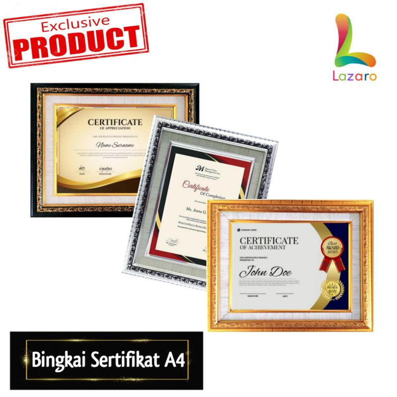 Bingkai Sertifikat Frame Sertifikat Bingkai Piagam Pigura Piagam Bingkai Penghargaan A4 21x30 Cm Shopee Indonesia