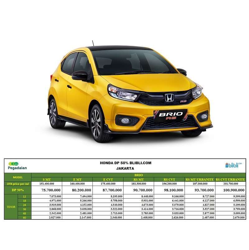 Honda Brio RS CVT Urbanite Edition DP 50% — Dengan DP 30% dan masa cicilan 1 tahun, maka pembeli wajib menyiapkan DP sebesar Rp52,6 juta dengan ...