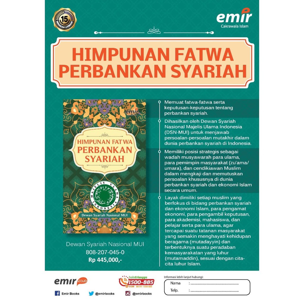 Fatwa DSN MUI Atas Uang Muka Pembiayaan Bank Syariah ... Hal ini tercantum dalam Fatwa DSN MUI No: 13/DSN-MUI/IX/2000 Tentang Uang Muka Dalam Murabahah. Ketentuan Uang Muka Dalam Murabahah. Dalam mencegah hal-hal yang tidak diinginkan, pihak MUI telah menetapkan beberapa ketentuan atas Uang Muka dalam pembiayaan di Bank Syariah, terutama Pembiayaan Murabahah. Berikut beberapa ketentuan tersebut: Fatwa DSN MUI - ojk.go.id POJK tentang Bank Pembiayaan Rakyat Syariah; Riset. Catatan Riset; Staff Paper. Struktur Jaringan Pasar Uang Antar Bank (PUAB) Rupiah; ... Fatwa Nomor: 80/DSN-MUI/III/2011: Penerapan Prinsip Syariah dalam Mekanisme Perdagangan Efek Bersifat Ekuitas Di Pasar Reguler Bursa Efek PDF Fatwa-fatwa Dewan Syariah Nasional 6. Fatwa tentang Wakalah..... 176 C. Pengujian Fatwa Tentang Kegiatan Akuntansi Perbankan Syariah..... 178 1. Fatwa Tentang Prinsip Distribusi Hasil Usaha..... 178 2. Fatwa Tentang Pencadangan Penghapusan Aktiva