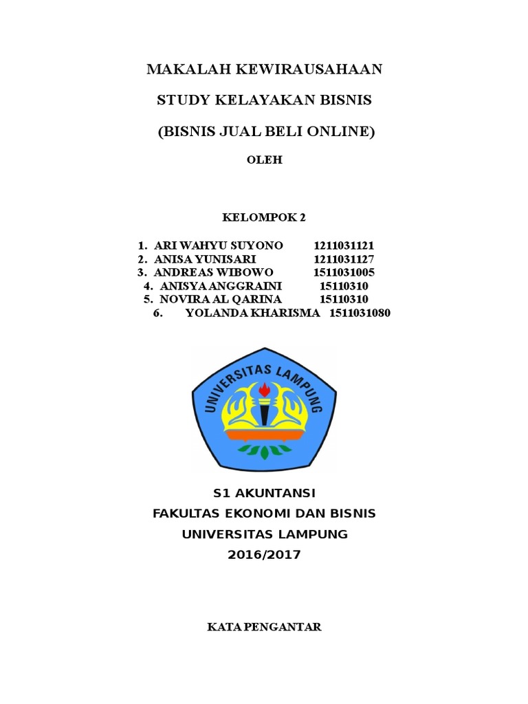 Contoh Proposal Studi Kelayakan Bisnis - Contoh Makalah ... Contoh proposal studi kelayakan bisnis. Mereka memberikan cita rasa baru terhadap jenis makanan yang mereka produksi sehingga para konsumen pun penasaran dan menjadikan variasi makanan makanan. Dokumen ini juga sangat penting untuk menggaet para investor apabila ingin berinvestasi pada usahamu. Shofiyyah 1405026121 prodi ekonomi islam.