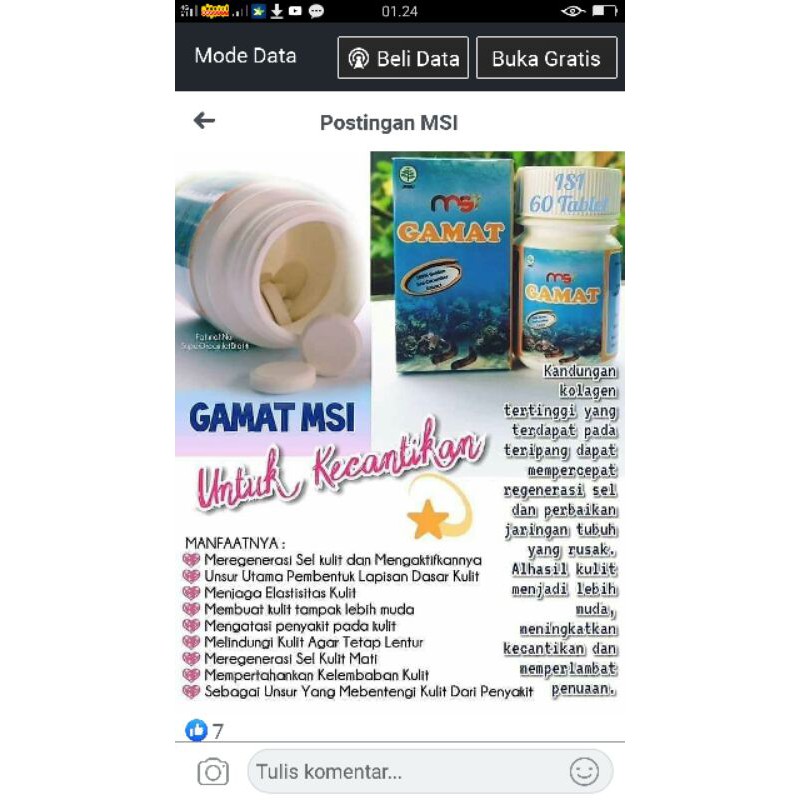 Produk | Blog Muhammad Ariffandi Gamat Emas Teripang Memperbaiki Fungsi Hati. Studi di China mengungkapkan bahwa gamat emas, Sea Cucumber (Teripang, Tripang, Gamat) juga mengandung saponin glycosides. Kandungan MSI Gamat Emas Teripang MSI Gamat Emas Teripang | paristuti.com MSI Fruit Serum. MSI Gamat Emas Teripang. MSI Glutacare Body Lotion. This Is Article About MSI Gamat Emas Teripang. mengatasi nyeri sendi dan membantu penyembuhan luka mempercepat penyembuhan beberapa penyakit meregenerasi sel kulit mati dan meremajakan kulit. Jual Produk Gamat Emas Msi Termurah dan Terlengkap... | Bukalapak MSI Gamat teripang emas original suplemen kesehatan daya tahan tubuh. Rp205.000. Gamalife gold MSI 1 botol isi 60 tablet original - gamat MSI - pengganti teripang emas. Rp70.000. Gamat Emas Msi Plan Platinum Wajib Coba. Gamat Emas Kapsul | Produk Gamat Emas Terbaik No 1 Indonesia Gamat Kapsul Herbal Teripang Emas terbaikl. Obat Herbal ini sudah teruji dengan adanya legalitas Badan POM dengan nomor POM 153385291. Gamat Emas Kapsul Merupakan Produk Herbal Multikhasiat yang telah memiliki Legalitas POM TR 153385291 dan Halal MUI.