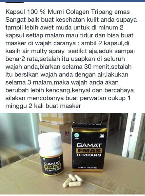 Pusat Gamat Emas Teripang - Home | Facebook yang kita tau, biasanya gamat dikemas dalam bentuk cair, sehingga sangat jarang orang yang mau konsumsinya karena bau amisnya yang menyengat. padahal gamat emas teripang ini banyak sekali manfaatnya untuk kesehatan dan kecantikan. MSI lebih mengerti,, dikemas dalam bentuk kapsul... GAMAT EMAS TERIPANG - produk msi Manfaat Gamat emas teripang , Khasiat Ampuh Untuk Segala Penyakit,Mempunyai Aneka FUngsi dan Kegunaan Beberapa Diantarana Yang Ampuh adalah : MAnfaat gamat Untuk Kesuburan, Khasiat Untuk Ibu Hamil, Kecantikan Kulit , Emulsion, Dan Lainya.