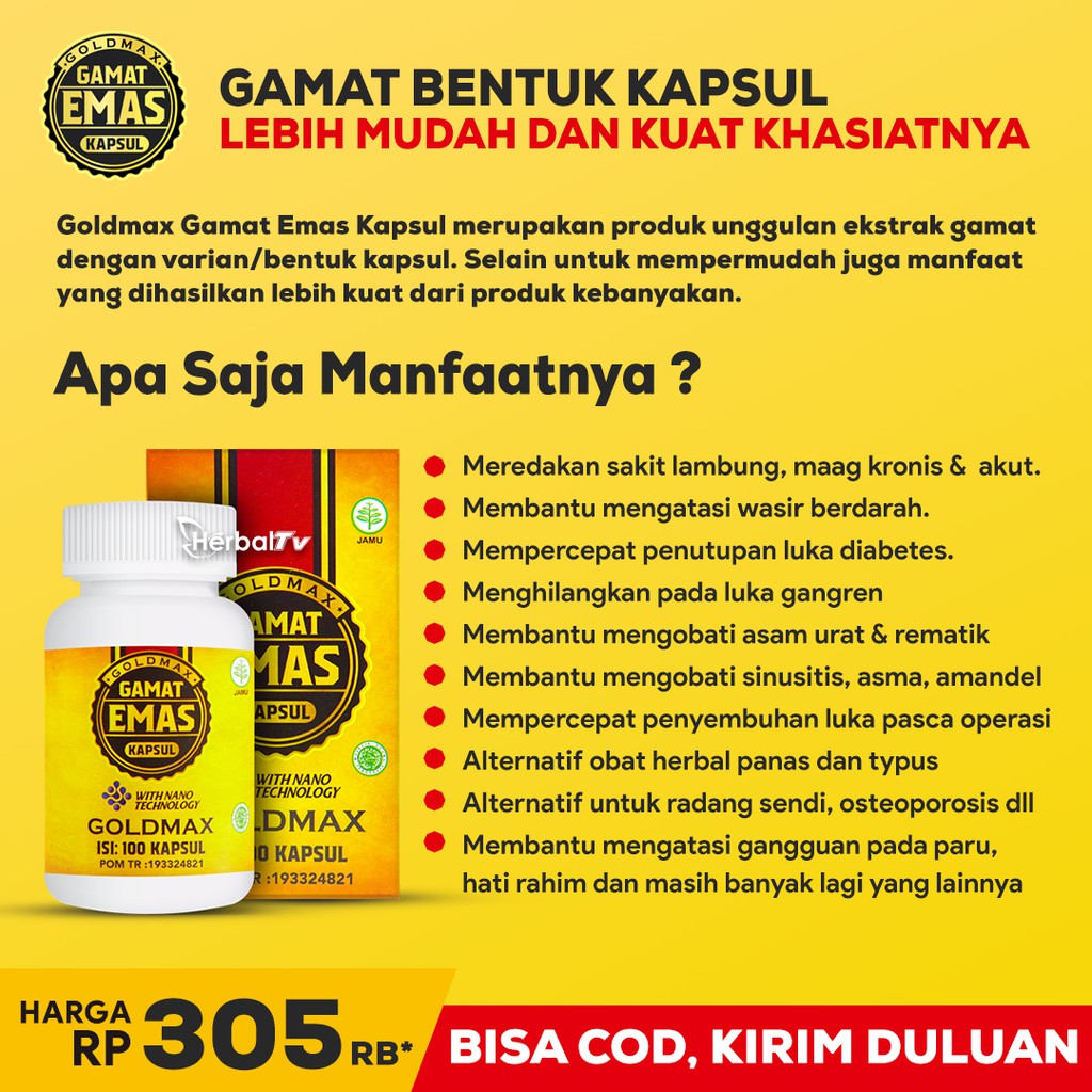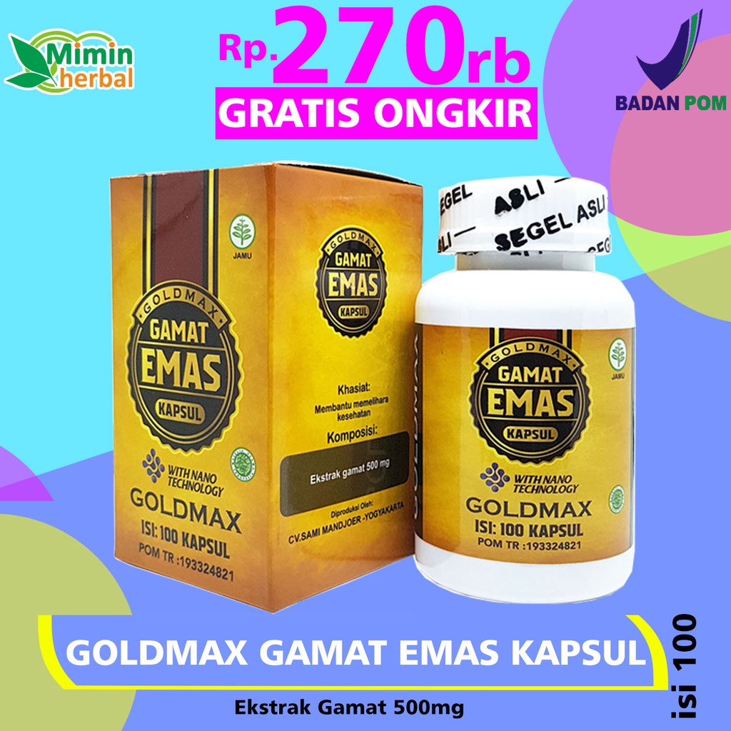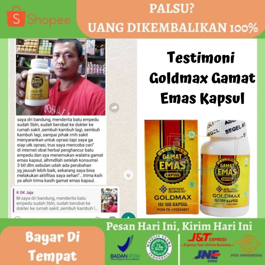 Promo Walatra Gamat Emas Kapsul Obat Tulang Ekor Nyeri ... Walatra Gamat Emas Kapsul Obat Tulang Ekor Nyeri [Original] GOLDMAX GAMAT EMAS KAPSUL merupakan suplemen kesehatan kekinian, unggul dan ampuh bagi anda yang ingin menyembuhkan keluhan atau gangguan kesehatan pada diri anda, apapun jenis penyakitnya baik itu kategori penyakit ringan atau kronis sekalipun.
