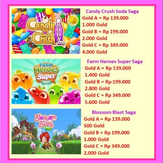 38 cara mendapatkan emas di game candy crush saga - Info ... Cara mendapatkan emas di game candy crush saga. Aug 12, 2020 · Setelah sukses dengan game Candy Crush Saga, sang developer King mencoba melanjutkannya dengan game Candy Crush Soda Saga. Secara garis besar permainannya sama seperti game sebelumnya, namun terdapat beberapa tambahan fitur di dalamnya, beberapa tips dan cheat Candy Crush Soda Saga ...