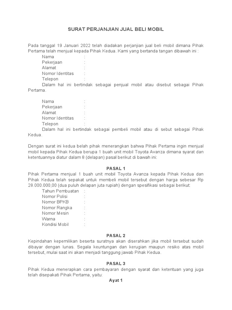 PERJANJIAN JUAL BELI - PT Indonesia Asahan Aluminium ... Kontrak adalah perjanjian dimana kondisi dan ... obligations to make payments, during the period ... seperti yang tertuang dalam surat pemberitahuan.4 pagesMissing: mobil | Must include: mobil